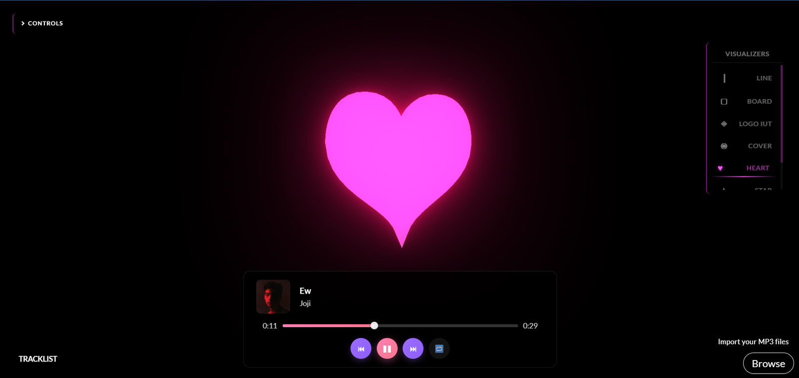 A 3D web app that visualizes music through various 3D shapes and effects, featuring a user-friendly interface for searching and playing songs.